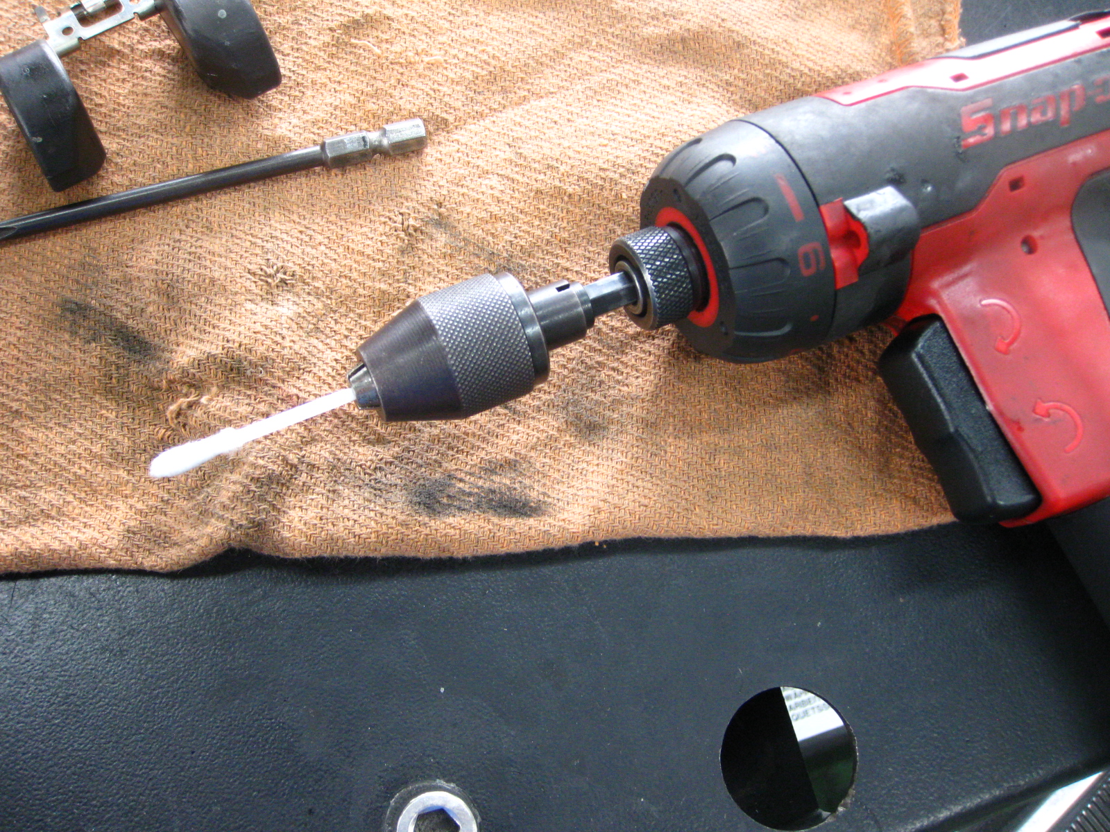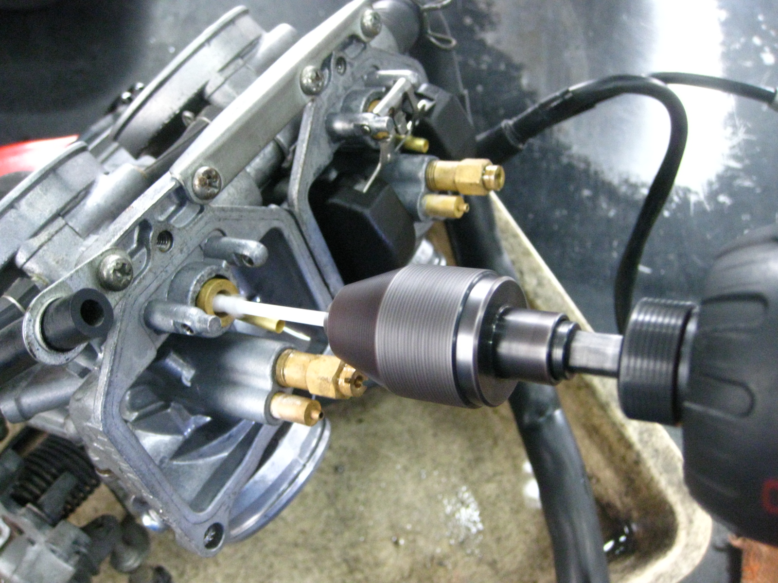 これ研磨材を塗ってドリルセットすれば! フロートバルブ穴をクリーニングできる訳ですね~~!
